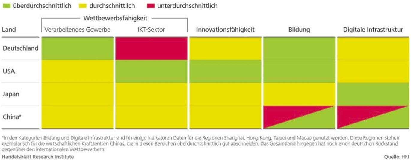 Wenn sich Deutschland als das bereits beschriebene „Industrie 4.0-Land Nr. 1 in der Welt“ bezeichnet, stellt sich die Frage, mit wem sich Deutschland in diesem Bereich vergleichen muss und welche Zugangsvoraussetzung mitgebracht werden müssen.