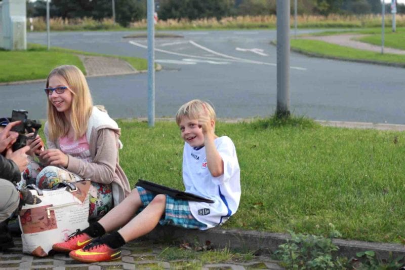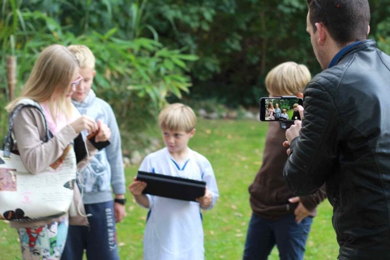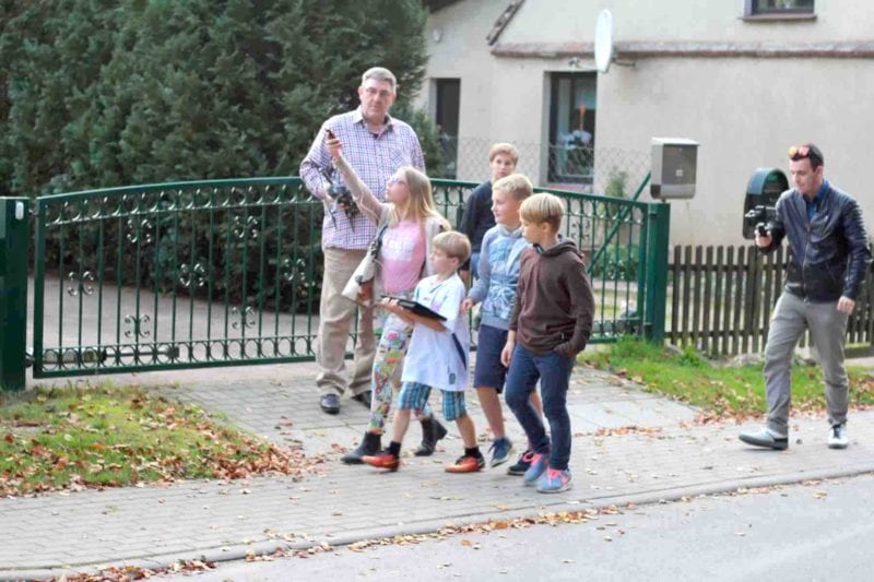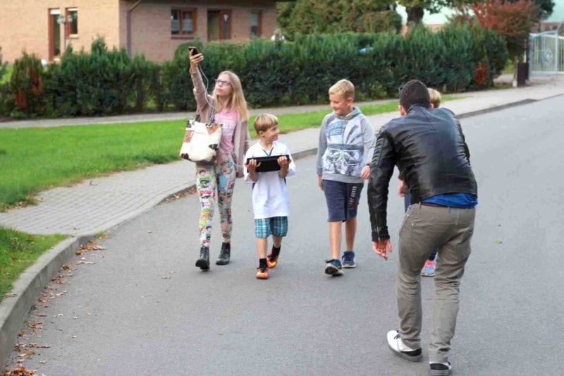 Etwas verblüfft waren die Kinder dennoch. Sie vermissten die großen Kameras und konnten gar nicht recht verstehen, dass solch ein Dreh auch mit einem Smartphone möglich ist. Aber als sie die zum Einsatz kommende Drohne sahen, war das Vorurteil auch schon wieder schnell verblasst. Da hatten wir wohl noch einmal Glück gehabt 😉