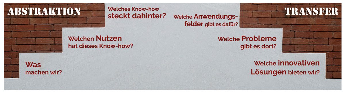 Um in diesem Bereich Chancen zu erkennen, sollten sich Innovationsverantwortliche fragen: Welche Probleme können wir mit unseren Fähigkeiten außerdem lösen, die uns noch gar nicht bewusst sind? Welchen Nutzen hat unser Know-how zusätzlich, wo und wie kann es angewendet werden? Die Abstraktion der eigenen Kernkompetenzen und der Transfer in andere Bereiche offenbart neue Lösungsansätze, neue Geschäftsfelder und unbekannte Möglichkeiten, auch branchenübergreifend.