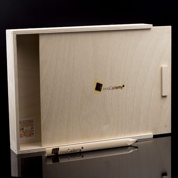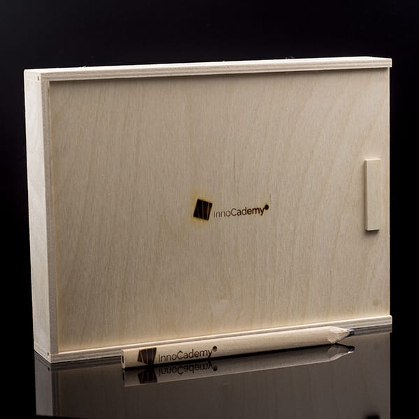 Die solo Ideentoolbox (ohne Karten) ist eine praktische Aufbewahrungsmöglichkeit für Ihre eigenen Notizen und Ideen. In der „Customized“-Variante lasern wir die Ideentoolbox und den Bleistift mit Ihrem Unternehmenslogo.