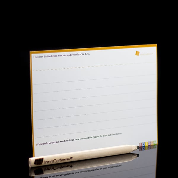 Sie erhalten einen Satz Methodenkarten à 20 Stück für die Technik „Verwandlungsbox“ aus der Edison-Toolbox. Auf jeder Karte finden Sie eine Kurzanleitung. Format: DIN A5, 250 g Karton, matt.