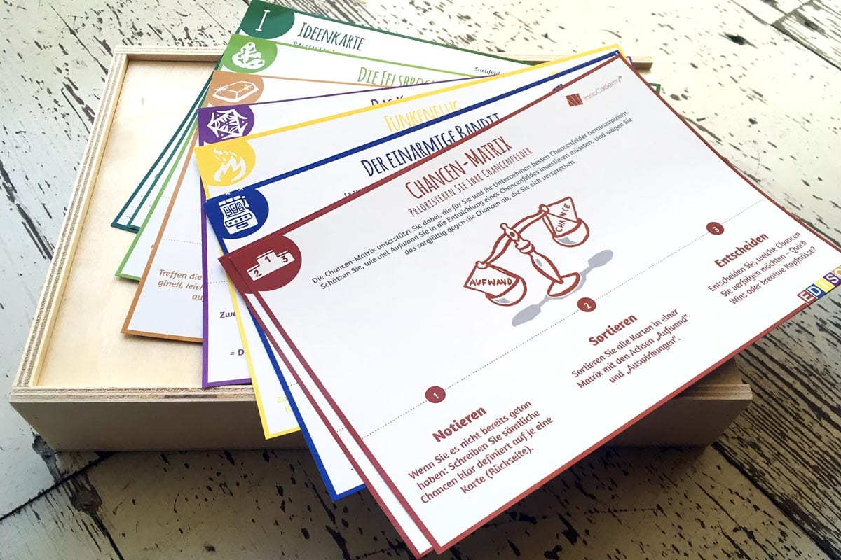 So gelingt es, bei der Suche nach neuen Ideen für Produkte, Dienstleistungen oder Geschäftsmodelle schneller und zielführender voranzukommen. Durch die Kreativitätsmethoden entstehen eine höhere Anzahl qualitativ hochwertiger Ideen, umsetzungsreife Konzepte und messbare Ergebnisse.